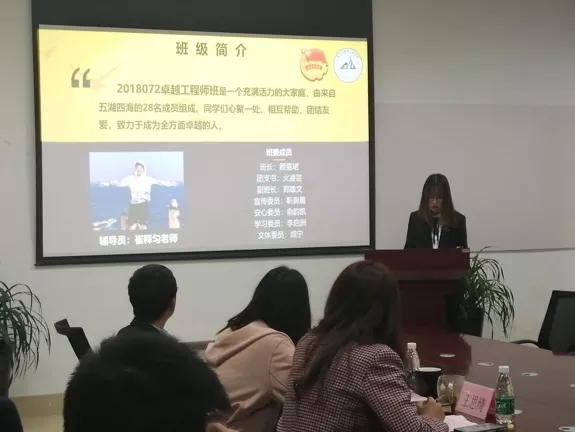 各班级代表通过PPT对班级情况、班级建设情况、班级优势、班级未来的展望进行了介绍,并展示了丰富多彩的团日活动、积极良好的学习氛围、生动有趣的班级团建以及各种利于学习生活工作的小组。同时,各个班级还展示了所荣获的各种集体和班级个人的荣誉、称号等,致力于打造德智体美劳全面发展的集体。