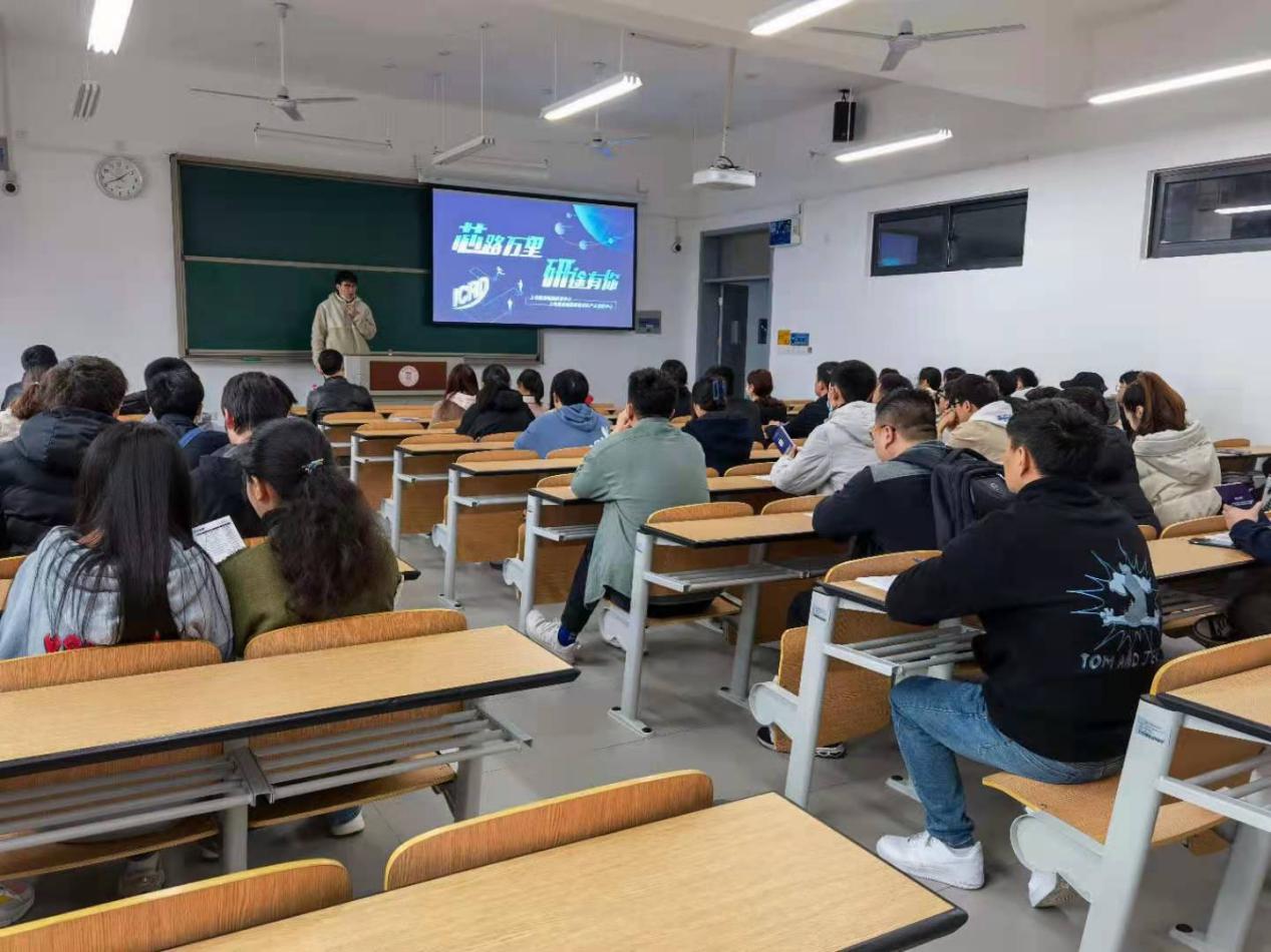 宣讲会上,朱胡祥详细向同学们介绍了上海集成电路研发中心的发展现状、培养模式和福利待遇,集成电路研发中心有限公司位于上海张江高科技园区,是独立面向全行业集成电路企业、大学以及研究所开放的公共研发机构,建有国内唯一的12英寸开放式集成电路工艺引导线和研发平台,并且研发中心二期也已成立,将建成国内首个集制造和研发为一体的集成电路AI Fab。上海集成电路研发中心有限公司作为我国唯一的“国家级集成电路研发中心”,未来发展前景是十分光明的,更需要年轻力量的加入,朱胡祥表示热切期盼同学们对上海集成电路研发中心进行更深入地了解和勇敢尝试。