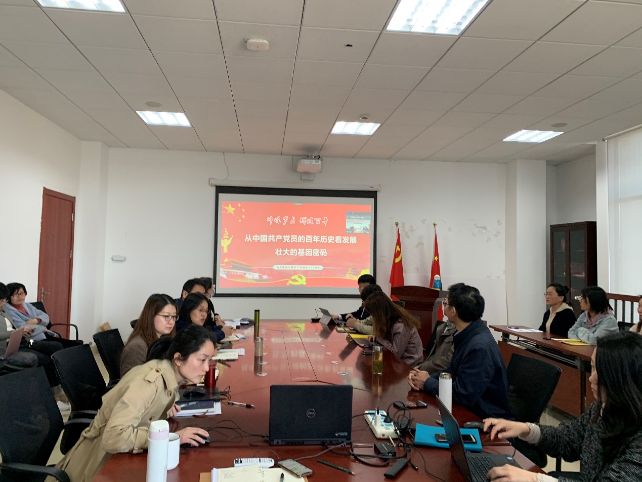 此次主题活动邀请了华东师范大学马克思主义学院速继明教授作题为《从中国共产党的百年历史看发展壮大的基因密码》的党史学习专题辅导报告。速继明教授结合党史,具体从中国共产党韧性品质的历史追溯,中国共产党何以具有历史韧劲,中国国家治理“韧性”的恒久展望三个方面带我们回顾了党的历史,从历史中探究党的韧性品质及在“站起来、富起来、强起来”阶段的表现。带领我们共同从历史中挖掘党成长背后蕴含的基因密码。