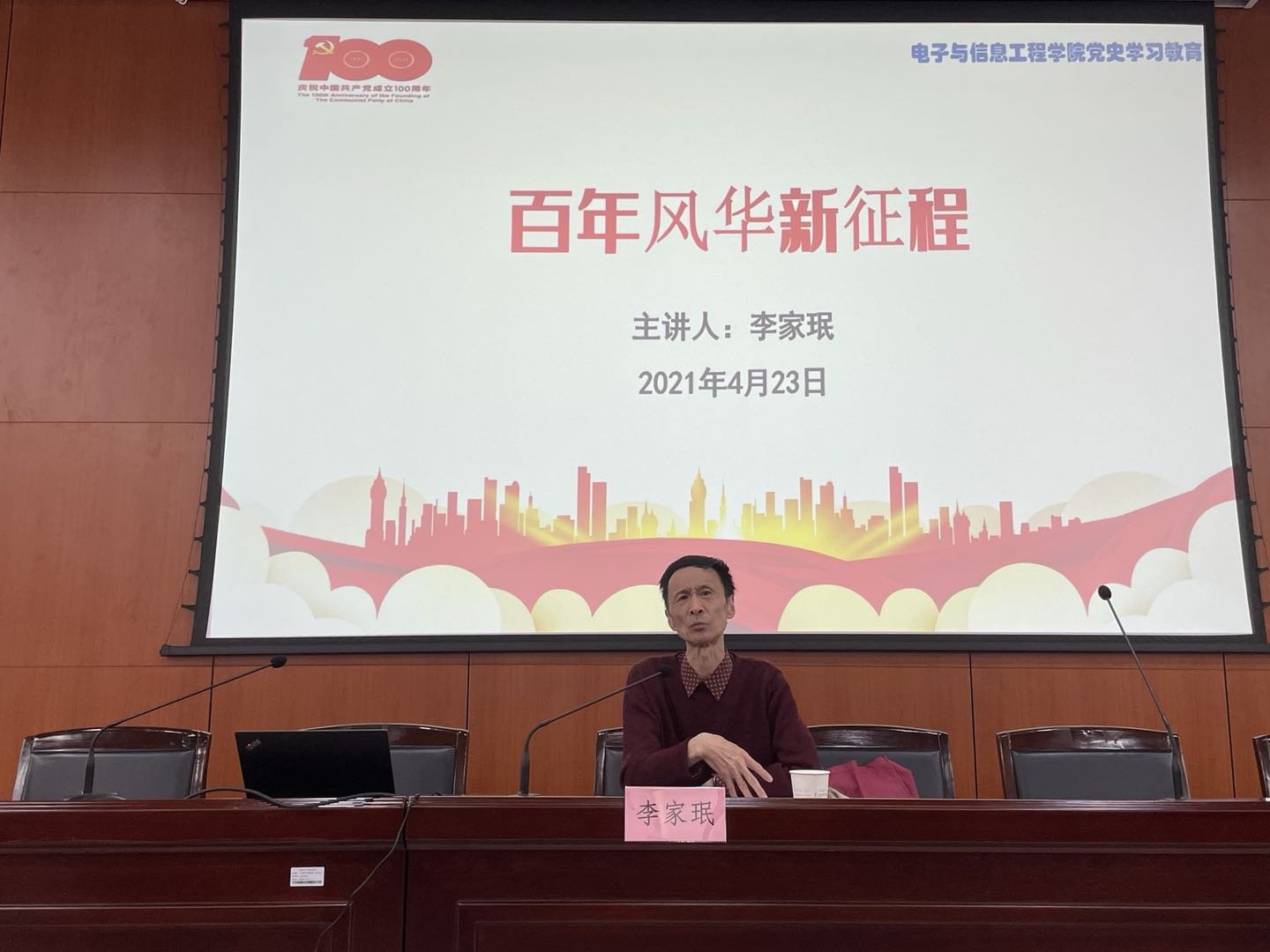 2021年是建党百年,在庆祝我们党百年华诞的重大时刻,学习百年党史,凝聚奋进力量。4月23日下午,bat365中文官方网站在学术楼103报告厅举办党员理论学习班第二讲,邀请李家珉教授作为主讲人,他是上海市哲学学会副秘书长、上海《东方讲坛》特聘讲师、bat365官网“五老”宣讲团成员。他作题为《百年风华新征程》的主题讲座,bat365官网部分学生党员、发展对象等参加活动。