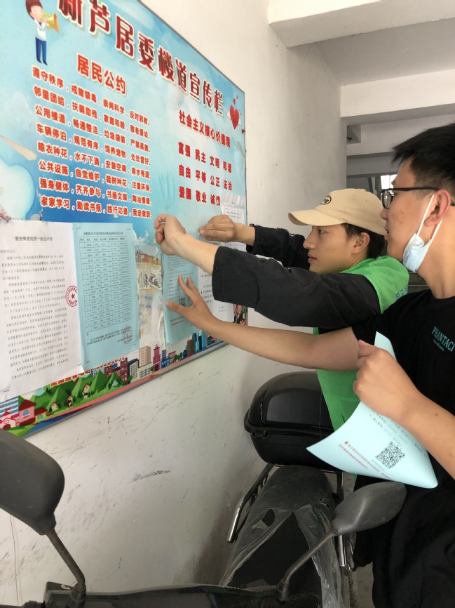 为有效帮助社区推进新冠疫苗接种工作,提升疫苗接种率,让更多的居民了解新冠疫苗接种知识和政策,提高全民新冠疫苗接种率,支部党员和班级同学通过在居民楼布告栏中粘贴宣传单页、为居民讲解新冠疫苗接种的注意事项等方式展开宣传。同学们耐心地讲解疫苗接种的必要性和安全性,并结合自身接种体验,进一步打消了居民们思想上的顾虑,使社区居民认识到新冠疫苗接种的重要性,很多居民了解疫苗接种具体情况后,当场积极踊跃扫码报名接种疫苗。