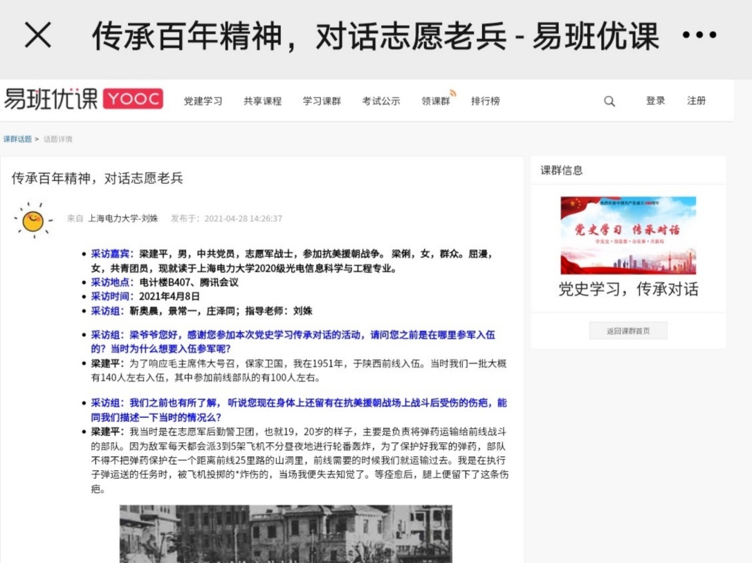 今年正值中国共产党百年华诞,为使广大师生深入学习党史,传承老党员的优秀品质。bat365中文官方网站深入挖掘师生身边的优秀党员榜样资源,通过学生与“老干部、老战士、老专家、老教师、老模范”的“五老”传承对话采访,并通过学院微信公众号与易班平台,带领广大师生走进优秀老党员可歌可泣的故事中,感悟奋斗精神,增强责任担当,把党的百年奋斗延伸向未来。