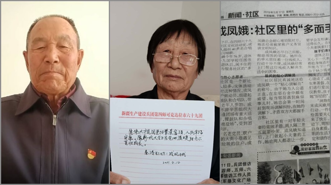 秦长卿老人在采访中回忆起自己初到新疆之时,那一片荒芜的艰苦戈壁,非但没有磨削援疆士兵建设新疆的意愿,反而激发起了他们的斗志,再怎么艰难困苦,大家都坚持了下来,这才有了如今的美丽新疆。而成凤娥老人作为边疆教师,教育陪伴并见证着一代又一代边疆孩子们成长成才,也见证着这些孩子们将自己的青春奉献给祖国边疆的建设。同时作为所在建设兵团师里的“关心下一代工作先进个人”,成凤娥老人如今仍旧奋斗在社区一线,为美好家园的建设贡献自己的力量。