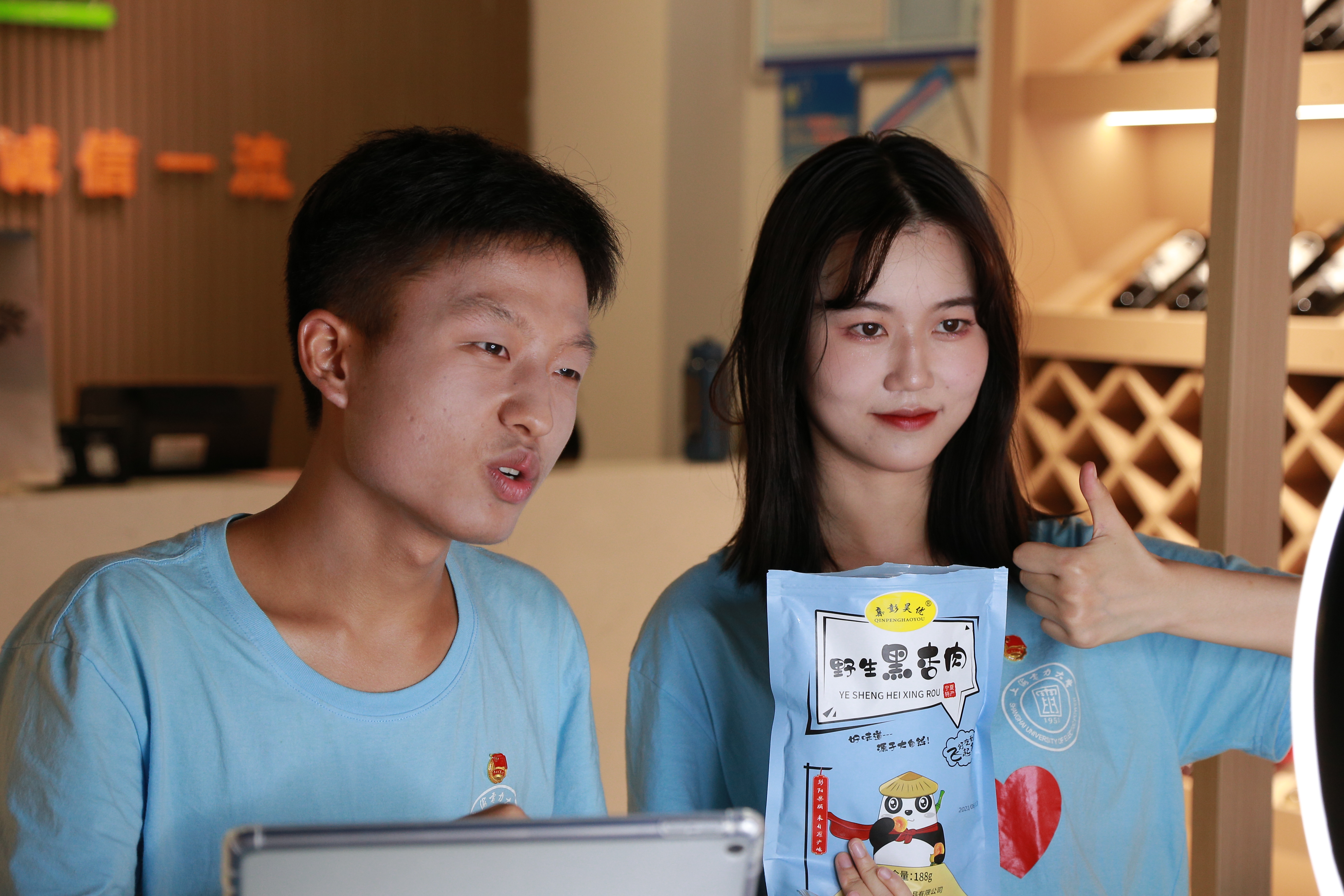 习近平总书记寄语青年学子,要让青春在不懈奋斗中绽放绚丽之花。实践队在西吉县杨河村搭设临时直播间,从田间地头到中国消费扶贫生活馆固原馆,破除传统直播间的束缚,在农田之间感受田地情感,在扶贫基地感受助农情怀,以消费助农行动为抓手,以销售助农产品为重点,开展爱心助农直播带货,激昂青春理想,彰显青年担当。两场直播共计获得5000余人气,累计交易金额达27000余元,推动了线上线下消费助农行动的良性循环,促进巩固脱贫成果和乡村振兴长远发展。实践队作为首个大学生实践团体与国务院扶贫办全国试点单位——中国消费扶贫生活馆固原馆合作成立“电商孵化基地”,构建电商生态圈,立足实干,发挥校企双方优势,扩大助农效益覆盖面。