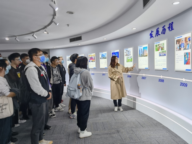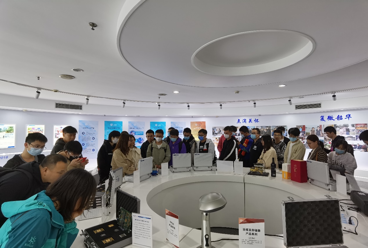 师生一行来到复旦微电子的杨浦分部,吕沁沁对bat365中文官方网站师生的来访表示欢迎并结合宣传视频介绍了复旦微电子的基本情况。该公司是国内从事超大规模集成电路的设计、开发、生产(测试)和提供系统解决方案的专业公司,是国内成立最早、首家上市的股份制集成电路设计企业,现已形成安全与识别、智能电表、非挥发存储器、智能电器、可编程器件FPGA、互联网创新六大成熟的产品线和系统解决方案,产品行销30多个国家和地区。随后吕沁沁在展览厅带着师生了解了公司创办以来的历史和取得的成就,复旦微电子自1998年成立以来,经过筚路蓝缕的创立期和追求卓越的成长期,逐步形成了信任尊重、诚实守信、激情创新、领先卓越的企业文化,正逐步成为国内乃至国外一流集成电路设计企业。