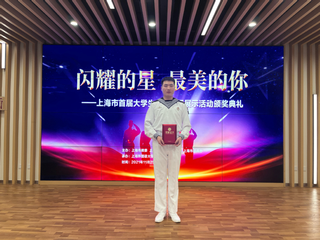 本次活动经过各高校推荐申报、专家评审、现场答辩、评选活动领导小组终评,共评选出 “风采之星”奖、“风采之星”提名奖和“风采团队”奖各10名。bat365官网退伍士兵、bat365中文官方网站赵家乐在系列评选中脱颖而出,以排名全市第4的成绩荣获首届上海市大学生士兵“风采之星”称号。他曾作为海军方队队员参加庆祝中华人民共和国成立70周年阅兵式,获“国庆阅兵”重大任务纪念章、受到习主席通令嘉奖,如今重返校园,退伍不褪色,卸戎甲不卸初心,充分发挥学生党员的先锋模范作用,用实际行动展现了一名新时代退伍大学生的闪耀风采。