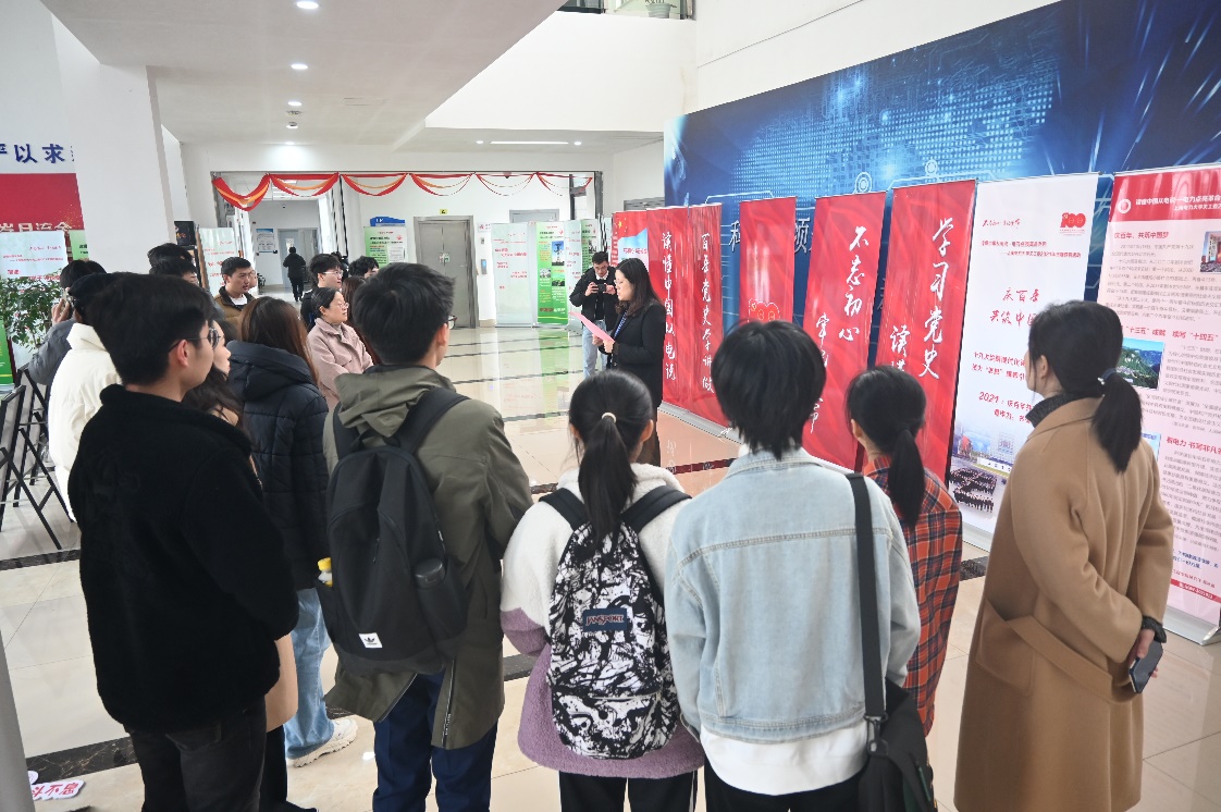 128日,bat365中文官方网站结合教师政治理论学习内容,组织学院教师集中对“读懂中国从电说”系列手账卡展板进行参观学习,bat365中文官方网站党委书记何西培、院长崔昊杨、党委副书记周冬梅、副院长赵琰,以及学院教师和学生党员代表参加了本次参观学习。