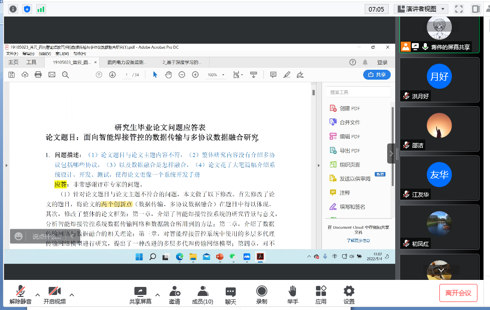 最后,导师们表示会根据会上提出的问题和修改意见,继续指导研究生修改论文,在严格把关论文质量的同时关心学生的身心健康。