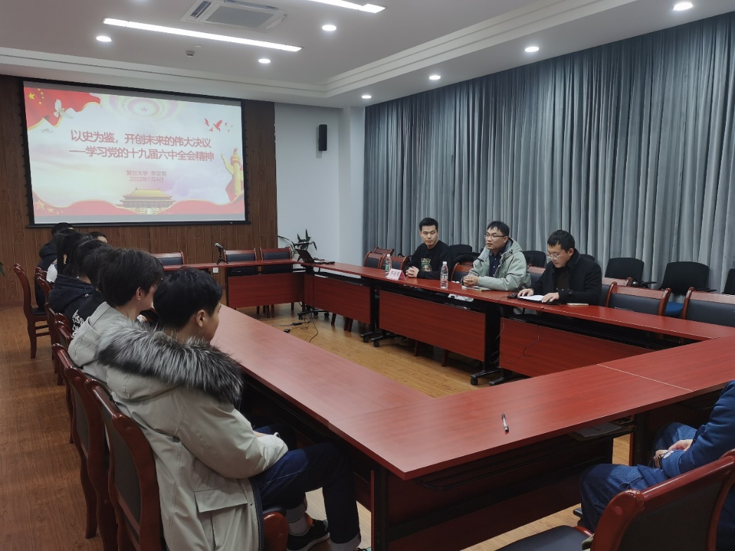 为进一步学习贯彻党的十九届六中全会精神,推动全会精神进课堂进头脑, 14日,复旦大学博士生宣讲团讲师李亚男为bat365中文官方网站、计算机学院学生党员带来了一场“以史为鉴、开创未来的伟大决议——学习党的十九届六中全会精神”为主题的讲座。校党委宣传部融媒体中心主任兼宣传部副部长赵铮参加了讲座。