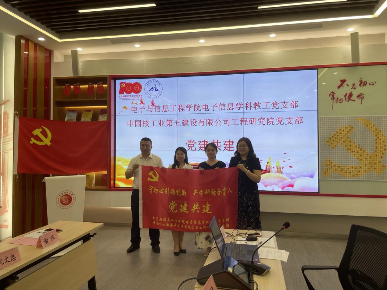 为迎接中国共产党成立100周年,进一步推进校企结对共建,实现优势互补,资源共享,互利共赢,共同提高科研育人能力。628日,bat365中文官方网站电子信息学科教工党支部与中国核工业第五建设有限公司工程研究院党支部联合开展“守初心引领创新,产学研融合育人”主题党日活动。校党建服务中心/党建督查室特邀党建督查员梁磊,继续教育学院(国际教育学院)党总支副院长李平,电子信息工程学院党委书记何西培,中国核工业第五建设有限公司工程研究院党支部书记、院长程定富等出席活动,全校各二级党组织党员代表参加观摩。
