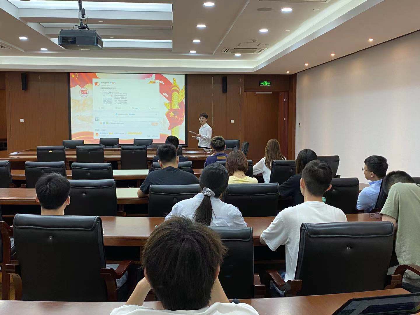 校时习社大学生理论宣讲团成员电子与信息工程学2020研究生石承鑫作“以抗美援朝战争为例 加强民族主义教育,反对历史虚无主义”主题宣讲。