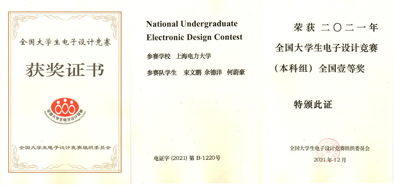 2021年全国大学生电子设计竞赛成绩日前揭晓,bat365官网bat365中文官方网站学生束文鹏、余德洋、何蔚豪斩获全国一等奖,突破了bat365官网在该项比赛中的最好成绩。