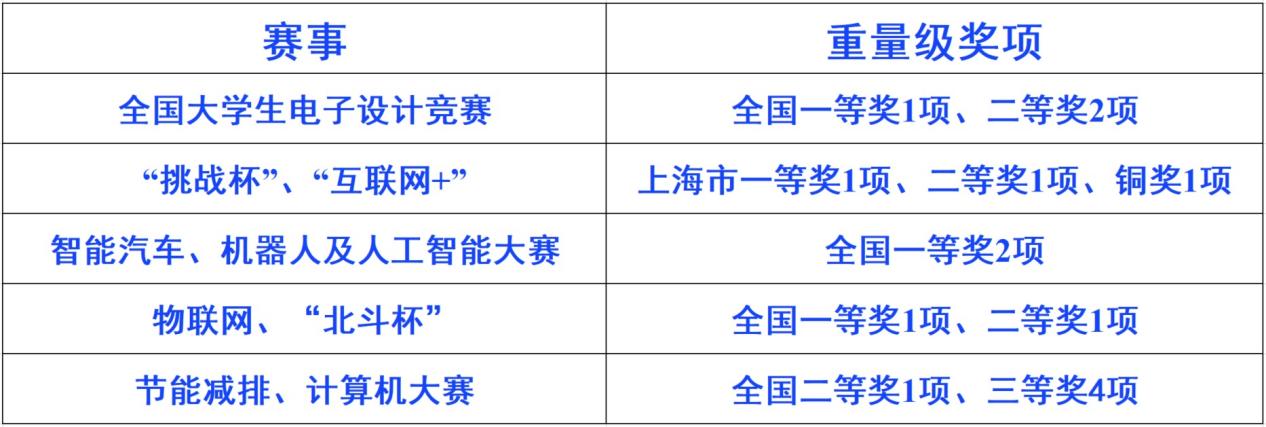2021年全国电赛,吸引了来自全国各省市赛区的千余所院校,近2万支队伍,6万名大学生参加。bat365中文官方网站师生克服了因疫情比赛延期、新老队员交替、队员重组磨合等重重困难,迎难而上,最终斩获了全国一等奖1项、全国二等奖2项、上海赛区一等奖4项、上海赛区二等奖2项、上海赛区三等奖3项、成功参赛奖6项等荣誉,获奖成果名列上海高校前列,并获得优秀组织奖荣誉。