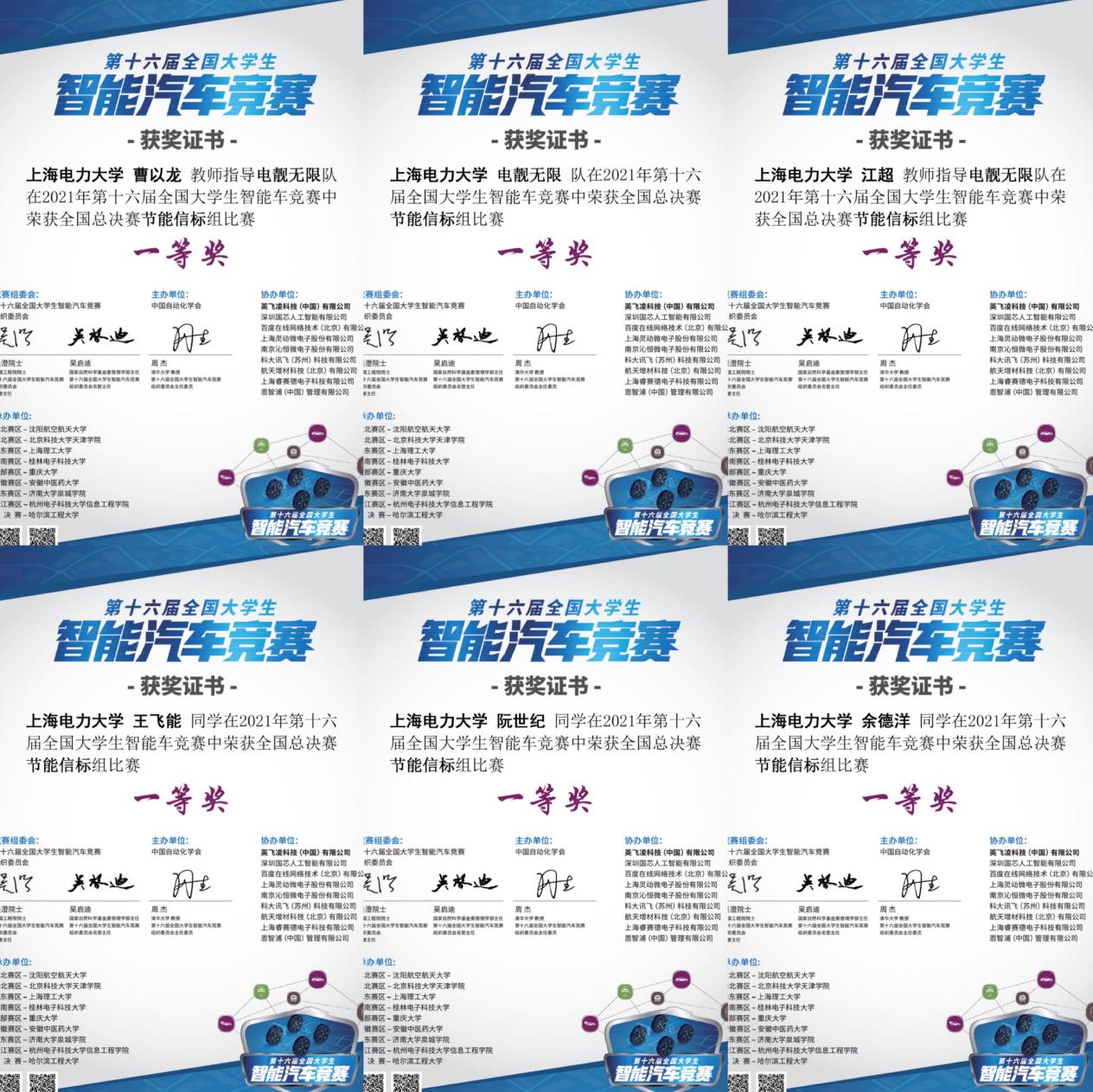 近日,来自bat365中文官方网站的智能车车队“电靓无限”于2021年第十六届全国大学生智能汽车竞赛中获得节能信标组全国第五名(并列)的好成绩,成功摘得全国一等奖;与此同时,参加2021年全国大学生物联网设计竞赛(华为杯)的“空天地立体化智慧电网线路守卫者”小队也传来捷报,一举摘得全国一等奖。