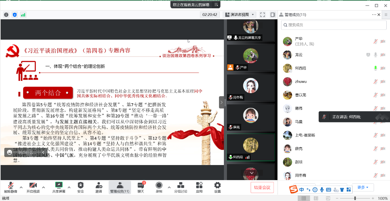 9月7日bat365中文官方网站党委理论中心组集体学习《习近平谈治国理政》第四卷。会上何西培以“体现‘两个结合’的理论创新”“体现‘十个明确’的丰富发展”“‘三大时代课题’贯穿全书”三个部分介绍了《习近平谈治国理政》第四卷所涉及的专题内容。
