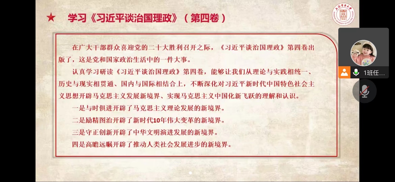 她强调要切实增强用习近平新时代中国特色社会主义思想武装头脑、指导实践、推动工作的政治自觉、思想自觉和行动自觉,坚定不移沿着习近平总书记指引的方向前进。要求学院党政班子先学一步,以上率下示范引领,在学习中凝聚奋进力量,不断提高学院师生理论素养和思想觉悟,切实把学习成效转化为奋进新征程、建功新时代的工作举措,以实际行动迎接党的二十大胜利召开。