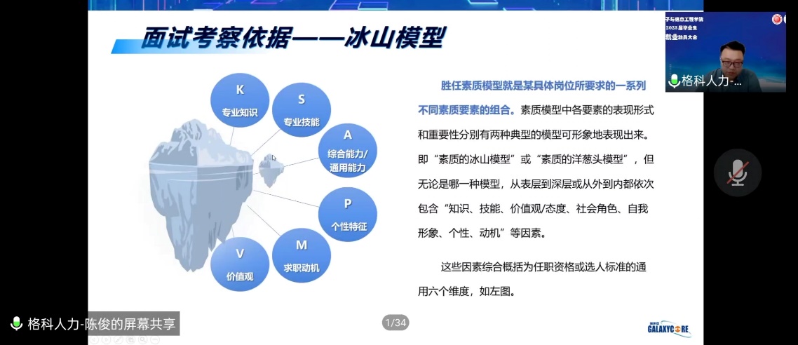 就业动员大会的第二个环节由格科微电子人力资源陈俊为毕业生开展了“关于简历面试那些事儿”的讲座,陈俊站在HR的角度上,以一系列幽默的比喻向同学们讲解简历制作、面试技巧的注意事项。讲座中,他强调简历应该做到内容为王、定位准确、创意出彩;面试应该注重面试技巧、考察依据、准备维度。最后他介绍了格科微电子的基本信息,展现了企业广阔美好的发展前景,并且热烈欢迎同学们加入格科微电子。