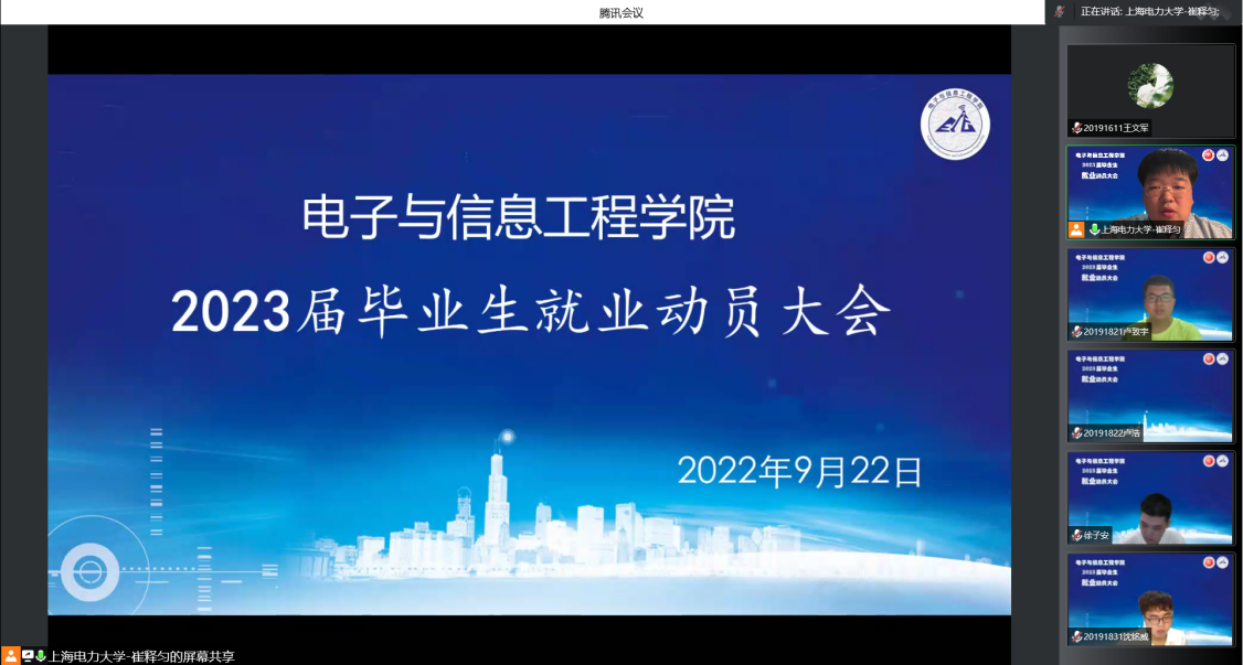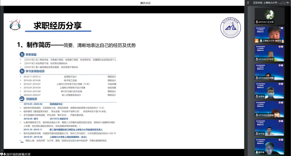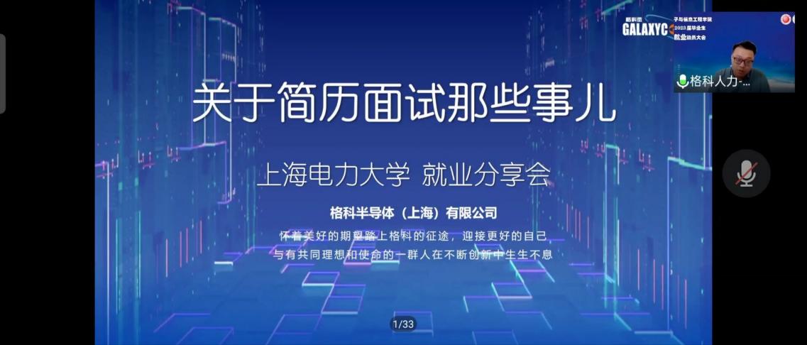 为扎实推进2023届毕业生就业指导工作,让毕业生明晰当前就业形势,把握就业机会,9月22日,bat365中文官方网站通过腾讯会议的形式召开2023届毕业生就业动员大会,引导同学们进一步明确就业思路与方向,做好求职准备与行动。bat365中文官方网站党委副书记周冬梅,副院长赵琰,2021届就职于中国电信上海分公司的校友周宇涛、就职于上海集成电路研发中心的校友朱家申,毕业班辅导员和全体2023届毕业生参加会议。格科微电子(上海)有限公司人力资源陈俊受邀开展讲座。