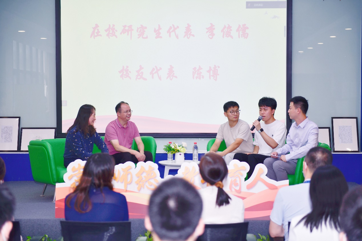 江友华老师亲临现场讲述了自己的求学经历、教学工作、科学研究,志愿服务等感人故事,讲述了自身与癌症抗争的十年过程中,如何坚守教书育人的初心和使命。现场教师代表、校友代表、学生代表从不同角度分享了与江友华老师相处的感人瞬间。与会师生纷纷感慨,通过聆听本次师德讲堂,切实感受到了江友华老师无私奉献、甘为人梯的精神品格,他的坚韧、执着与博爱,印证了平凡中的非凡,普通中的崇高,为我们树立了身边可亲可敬的榜样,激励我们每一个人都努力活出自己生命的价值。