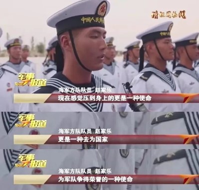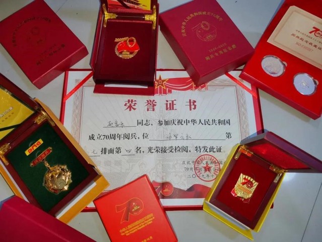 庆节当天的天安门广场上,他身着白色水兵服,胸前挂着枪,昂首阔步的走在长安街上,经过了习近平总书记检阅、人民检阅。获得“国庆阅兵”重大任务纪念章、习近平总书记通令嘉奖,实现了为军队争光,为国家争光的愿望。