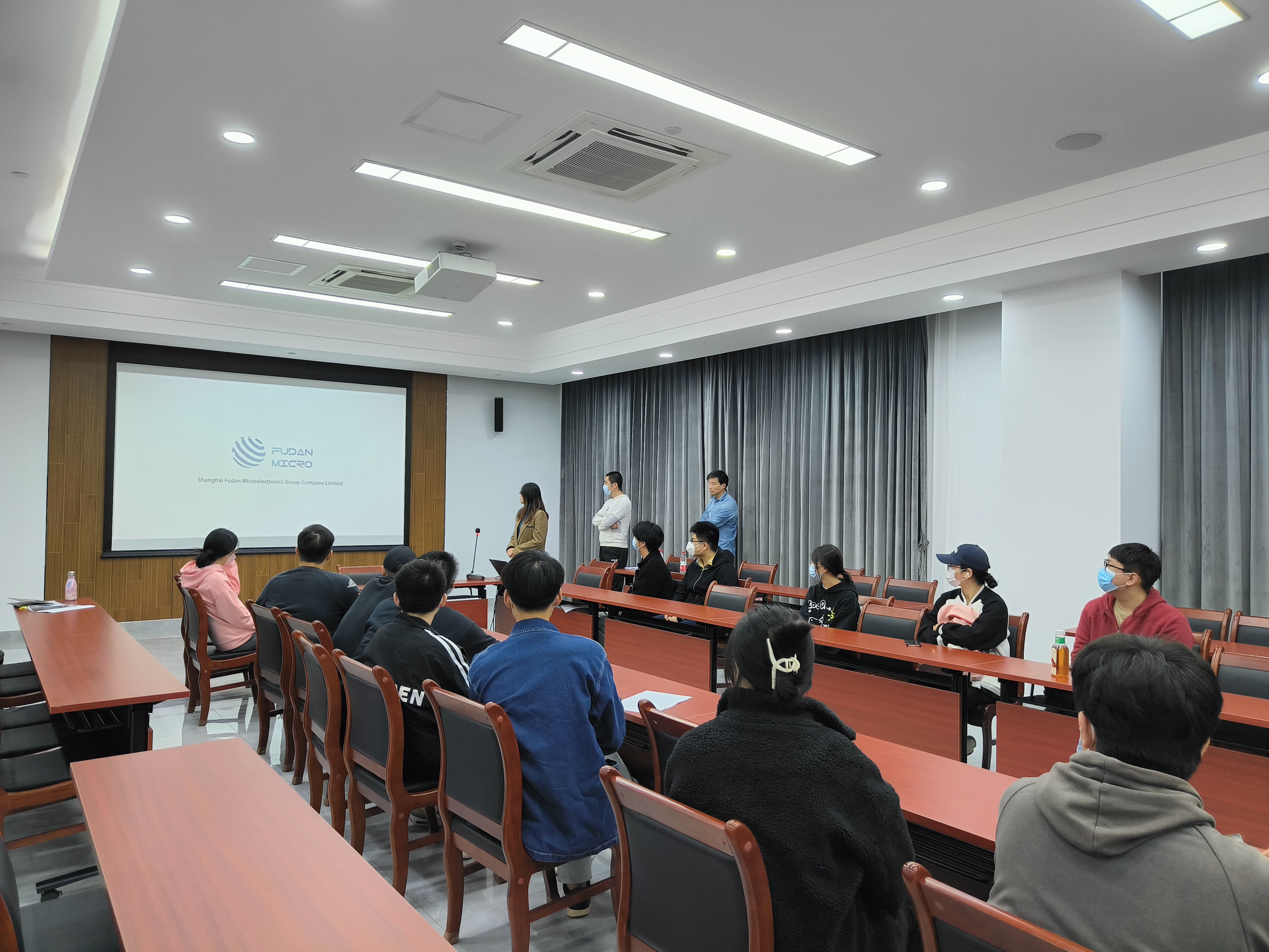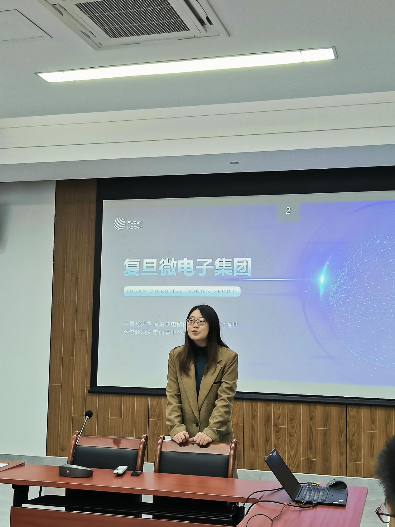 11月22日下午,上海复旦微电子集团股份有限公司(以下简称“复旦微电子”)2023届校园招聘宣讲会在bat365官网临港校区学术楼305会议室举办,复旦微电子人力资源部吕沁沁,工程师袁翔,就职于复旦微电子的bat365中文官方网站2021届毕业生刘琦,bat365中文官方网站党委副书记周冬梅,毕业班辅导员王思绮出席会议,宣讲会采用线上线下相结合的方式展开,bat365官网近80余名毕业生参加。