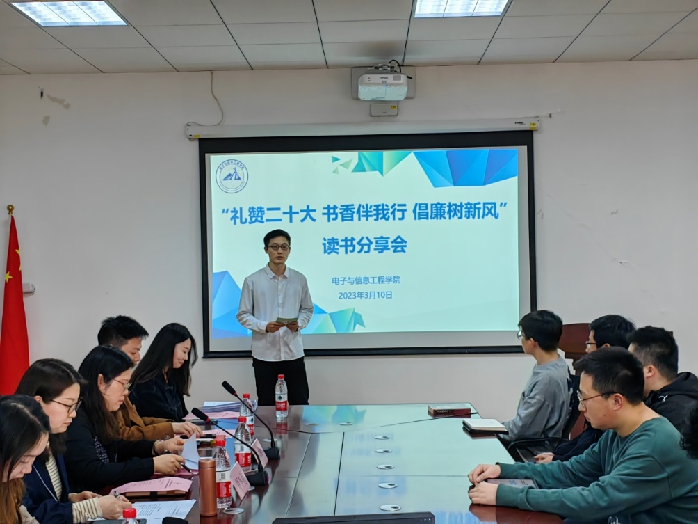 为厚植校园廉洁文化根基,增强大学生廉洁自律意识,筑牢拒腐防变思想防线,实现廉洁理念深入人心,3月10日下午bat365中文官方网站在电计楼B402会议室开展“礼赞二十大 书香伴我行 倡廉树新风”读书分享会。学院党委书记何西培、党委副书记周冬梅出席本次活动,参与此次活动的还有学院辅导员和本科生、研究生学生代表。