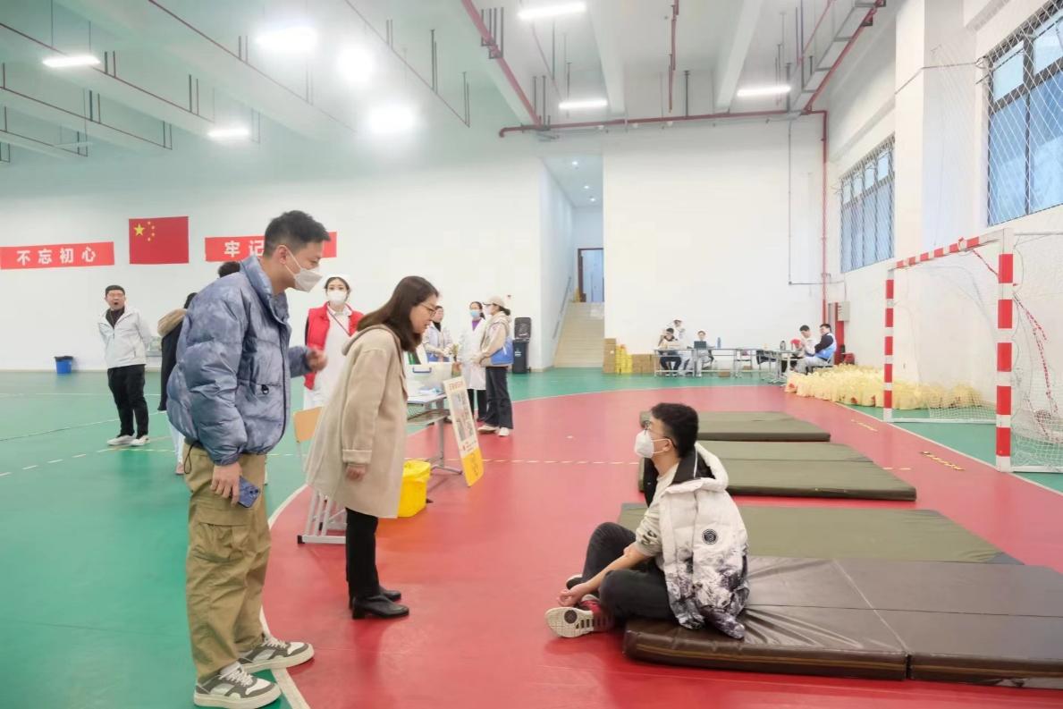 上午8点40分,bat365中文官方网站第一批无偿献血的同学们在临港校区一教103教室完成《献血登记表》的填写工作,并在志愿者的指引下前往手球馆进行献血。在医护人员和志愿者引导下,填表、体检、化验、等候、抽血、休息等流程井然有序地进行,无偿献血的同学们脸上洋溢着快乐的笑容,感受爱心奉献给自身带来的温暖与幸福。