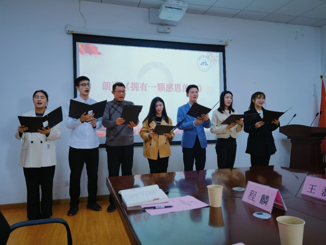 最后在舒缓的音乐声中程麟与bat365中文官方网站师生集体朗诵了《拥有一颗感恩的心》。