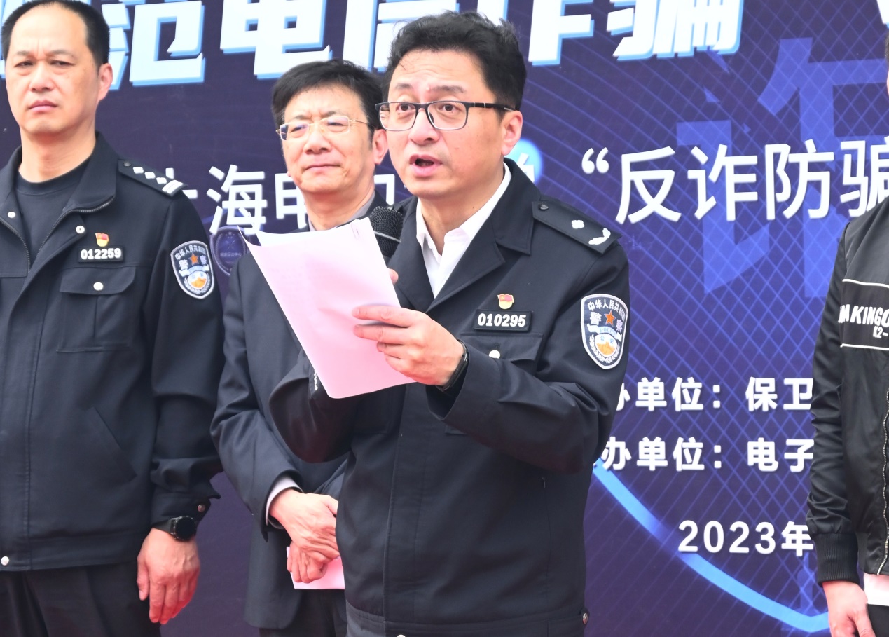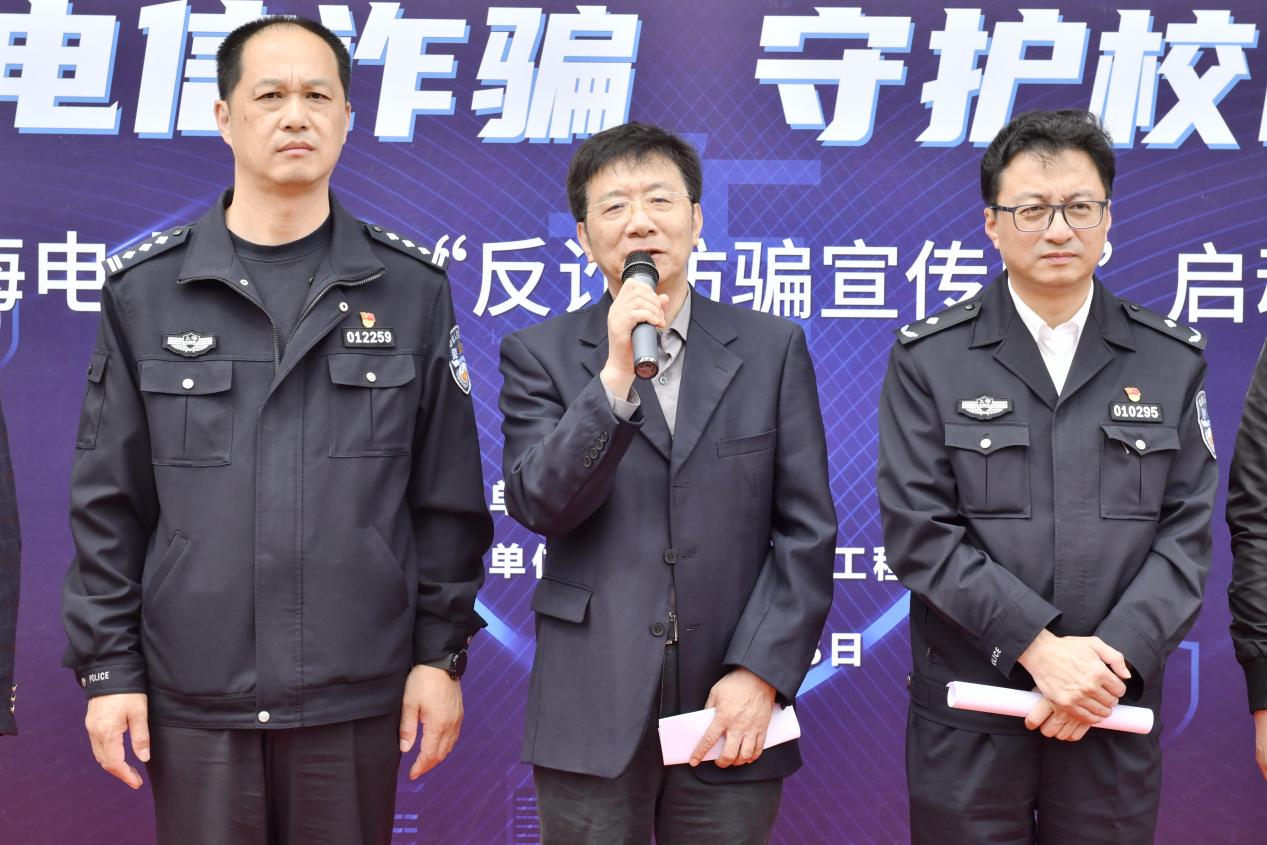 为增强大学生防范电信诈骗的意识,切实提高bat365官网安全管理水平,保护学生财产安全,营造良好的安全文化育人氛围。4月18日,由校保卫处主办、bat365中文官方网站承办的bat365中文官方网站“反诈防骗”宣传周启动仪式暨“防范电信诈骗、守护校园安全”防诈骗主题沉浸式体验活动在临港校区举行。自贸区临港新片区公安处处长王昕琦、临港新城派出所所长周少诚、临港高校派出所所长凌爱清,bat365官网副校长封金章、bat365中文官方网站党委书记何西培、保卫处处长金炜、校团委书记马国祥、研工部副部长陈静、学生处副处长陈雯、bat365中文官方网站副书记周冬梅出席。bat365官网师生员工共计600余人次参与,保卫处副处长余南飞主持启动仪式。
