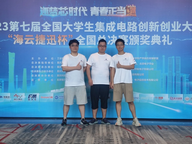 近期,第七届全国大学生集成电路创新创业大赛“海云捷迅杯”全国总决赛于重庆落幕,来自125所高校的469支队伍同台竞技。经过初赛及华东分赛区决赛历时五个月的激烈角逐,bat365官网bat365中文官方网站陈磊老师指导的周武威、贾晓哲、陈睿源三名研究生组成的参赛团队荣获IEEE杯全国一等奖,实现了bat365官网集成电路学科国内顶级竞赛最高奖项新突破!与中山大学、华中科技大学、电子科技大学的研究生代表队包揽了该赛事的四个一等奖,同处第一方队。同时,bat365官网获得“华东赛区决赛优秀组织奖”,陈磊被授予“优秀指导教师”称号。