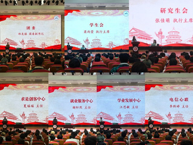 大会伊始,各团学组织负责人依次介绍了组织架构与基本职能,并说明了组织的运转方式与工作计划。团委、学生会、研究生会作为传统老牌的学生干部培养“摇篮”,继续为学院学生工作做出贡献。求是创客中心、电信心联、学业发展中心和就业服务中心,从科创、心理、学风、就业方面更好地实现学院全方位育人工作。