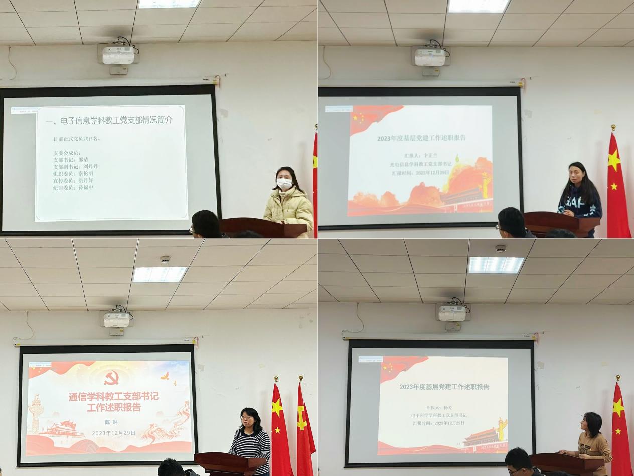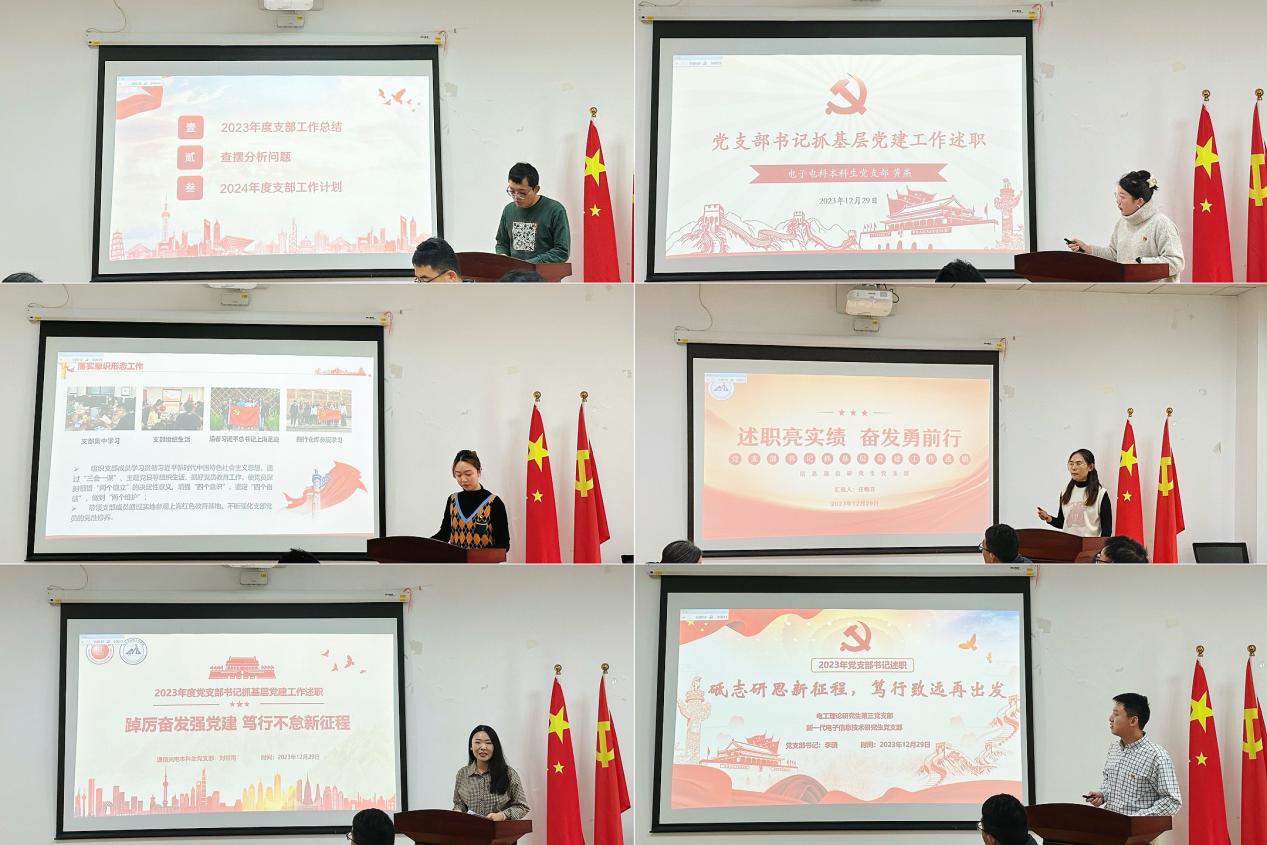 会上,学院各党支部书记在前期撰写总结报告的基础上,从总结成绩、查摆剖析问题和下一步打算三个方面,进行现场述职答辩。各党支部书记分别就个人思想政治状况、履行“一岗双责”情况、完成重点工作、落实全面从严治党主体责任等方面进行了述职汇报。2023年学院各党支部聚焦主责主业,以校党委“六新”理念为指导,将党建工作与学院中心工作有机结合,注重创新凝练支部特色,制定切实可行的计划和措施,以高质量党建推动学院转型发展。学院党委委员根据联系支部情况,对述职情况逐一进行点评,全体参会人员对支部书记抓基层党建工作情况进行了现场评议。