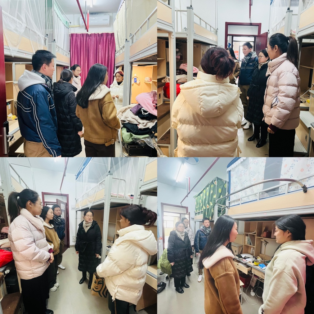 学院一行走访了留校学生宿舍,仔细查看宿舍各项设施,关心同学们的留校需求,排查宿舍安全隐患,提醒学生高度重视安全问题,营造良好的校园安全环境。