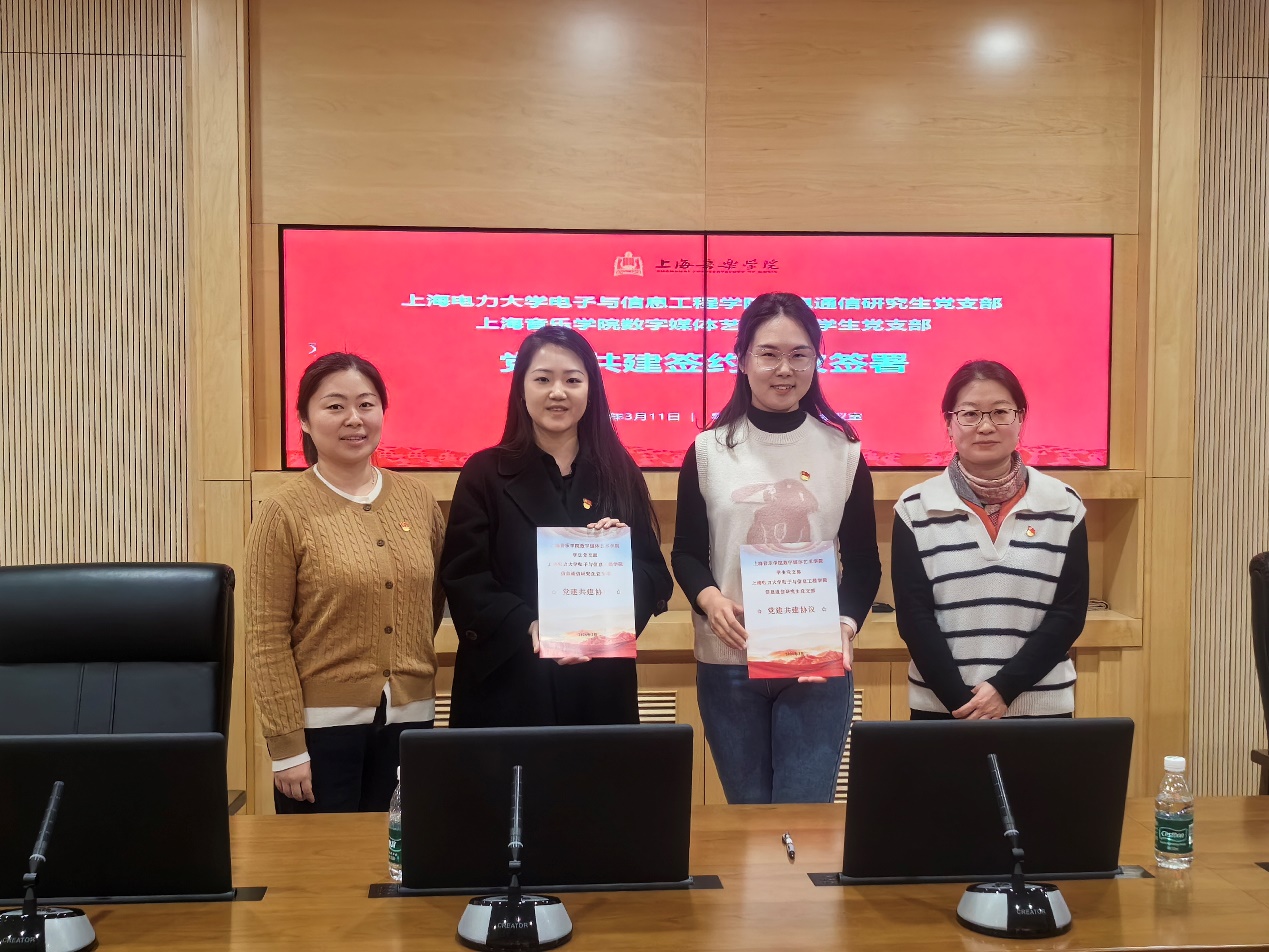 会上,上海音乐学院数字媒体艺术学院学生党支部书记殷鸣璐和bat365官网bat365中文官方网站信息通信研究生党支部书记任帼菲分别介绍了学生支部的特色做法并在双方学院的见证下共建签约,今后双方将充分发挥各自党建优势,携手提升党建工作水平,丰富工作载体,创新工作模式。
