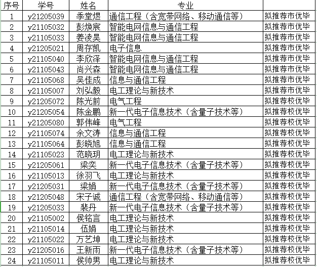 上述优秀毕业生人选拟推送至研究生院,特此公示,公示时间为2024年4月3日-2024年4月7日,如有异议请在公示期间向阮老师反馈。