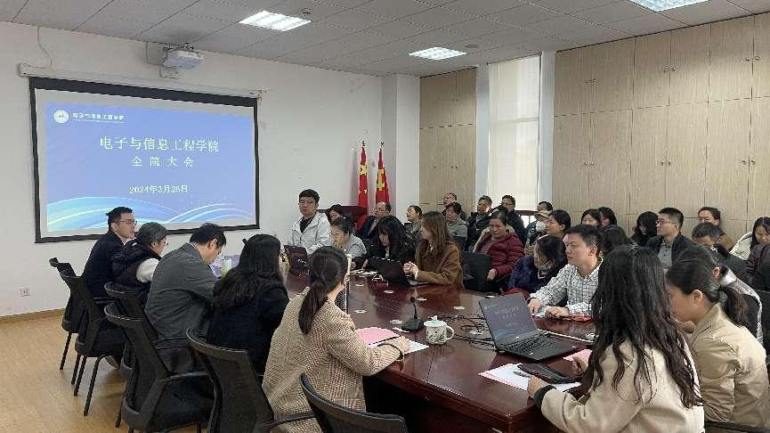 3月26日下午,bat365中文官方网站在电计楼B402会议室召开全院大会,学院领导班子成员和全体教职工参会。会议由党委书记何西培主持。