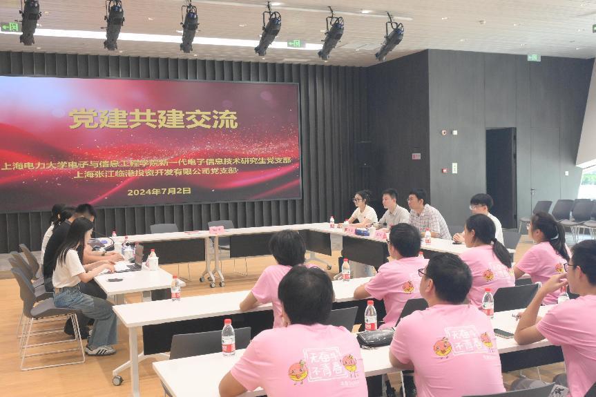 为深入学习贯彻党的二十大精神,增强党组织凝聚力、战斗力和创造力,推进高校与企业党组织共建共享、互融共促,7月2日上午,bat365中文官方网站新一代电子信息技术研究生党支部与上海张江临港投资开发有限公司党支部开展支部共建。上海张江临港公司招商服务部副经理沈天宇、综合管理部副经理南睿、招商服务部品牌宣传与媒体专员杨天芸、综合管理部党务专员潘蒙娜,bat365中文官方网站团委书记李天成、新一代电子信息技术研究生党支部书记李骁、副书记谭杰,纪检委员于子贺以及学生代表参加活动。