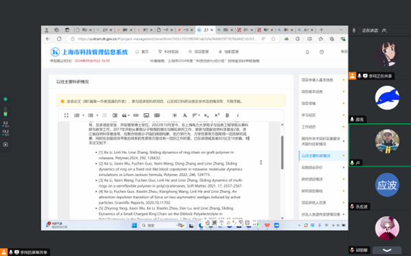 8月28日晚,第三场启明星申报辅导讲座召开,国家级优青杨阳老师出席并指导,bat365中文官方网站青年教师参加了会议。会议采用线上的形式,bat365中文官方网站副院长薛亮主持。会上,申报老师首先汇报了自己的答辩PPT,杨老师从内容结构、视觉呈现和演讲技巧等方面进行了全面的指导。他强调了答辩PPT的清晰度、针对性以及对答辩时间的精准把控,指导申报老师如何有效地展示项目的研究亮点和创新成果。此外,杨老师还就如何准备答辩环节提供了实用的建议,帮助老师们在答辩中更好地展示自己的项目。通过杨老师的指导,申报老师对如何优化答辩PPT有了更清晰的认识,对提升项目答辩的质量和竞争力充满了信心。