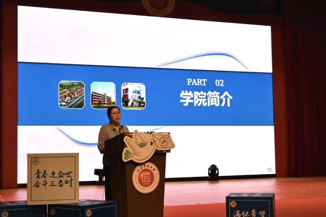 周冬梅对学生管理工作进行了深入介绍,她介绍了2024级新生的整体情况,围绕“现在你想要什么”、“现在你能做什么”和“未来你想成为什么”三个主题,引导新生尽快完成从高中到大学、从本科到研究生的过渡,做好人生“掌舵人”。在大学生活中学知识、学处事、学为人,锻炼身心健康,结交良师益友,积极创新,砥砺前行,树立打头阵当尖兵的意识,努力成长为堪当民族复兴大任的时代新人。