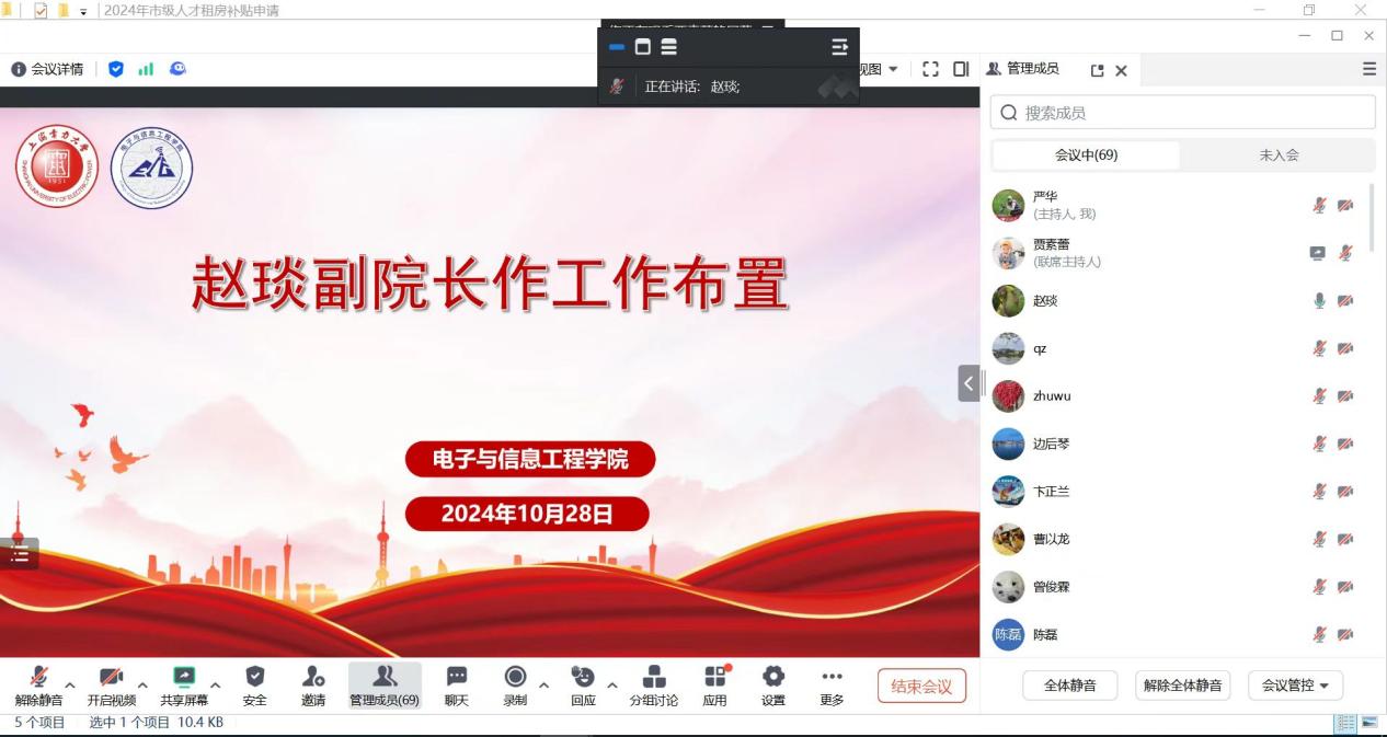 崔昊杨首先做了“建设特色鲜明的信息工程学院”专项汇报。从学院概况,本科人才培养思路与举措,本科人才培养成效与特色、自评自建情况和存在问题及下一步工作计划五个方面介绍了学院近五年在本科教育教学工作中取得的成绩,并提出了下一步工作计划,希望全院教师积极完成教学科研成果,进一步推动学院高质量发展。